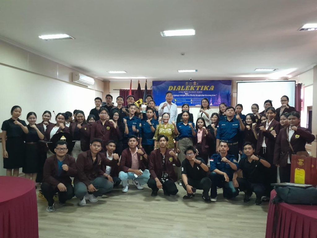 Singaraja – Selasa, 4 November 2025, Himpunan Mahasiswa (HIMA) Filsafat Hindu IAHN Mpu Kuturan Singaraja menyelenggarakan kegiatan DIALEKTIKA (Diskusi Akademis Ilmiah dan Beretika) bertempat di Aula Rektorat Kampus. Kegiatan ini mengangkat tema “Kesadaran Ekologis Sebagai Jalan Filsafat Menghadapi Bencana Alam” dan diikuti sekitar 80 peserta yang terdiri dari mahasiswa Prodi Filsafat Hindu serta perwakilan dari masing-masing program studi.