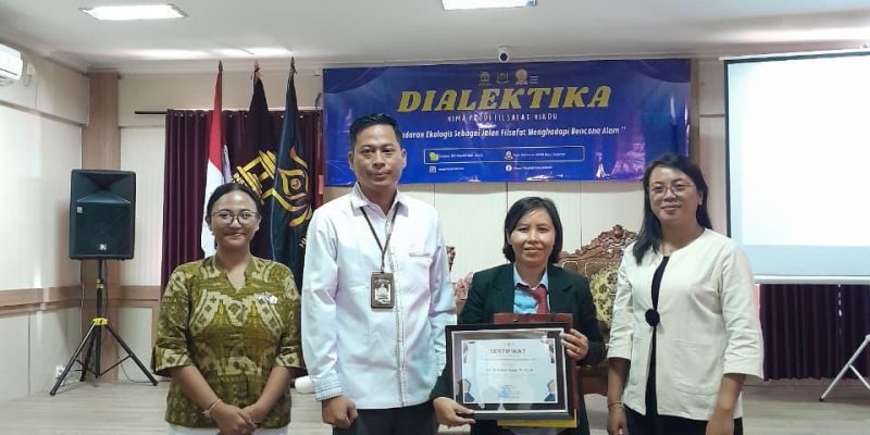 Singaraja – Selasa, 4 November 2025, Himpunan Mahasiswa (HIMA) Filsafat Hindu IAHN Mpu Kuturan Singaraja menyelenggarakan kegiatan DIALEKTIKA (Diskusi Akademis Ilmiah dan Beretika) bertempat di Aula Rektorat Kampus. Kegiatan ini mengangkat tema “Kesadaran Ekologis Sebagai Jalan Filsafat Menghadapi Bencana Alam” dan diikuti sekitar 80 peserta yang terdiri dari mahasiswa Prodi Filsafat Hindu serta perwakilan dari masing-masing program studi.