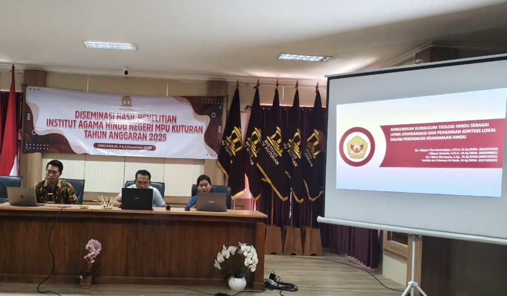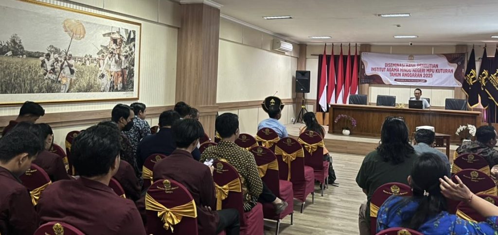 Singaraja, 3 Desember 2025 — Institut Agama Hindu Negeri (IAHN) Mpu Kuturan Singaraja kembali menegaskan komitmennya dalam memperkuat budaya ilmiah melalui penyelenggaraan Diseminasi Hasil Penelitian Tahun Anggaran 2025, yang berlangsung di Aula Rektorat Kampus Menjangan. Kegiatan ini dimulai pukul 09.00 WITA dan diikuti oleh 100 peserta, terdiri atas civitas akademika internal serta peserta eksternal dari BRIDA Buleleng, Dinas Kebudayaan, Dinas Pariwisata, Dinas Pendidikan, dan berbagai pemangku kepentingan lain yang relevan.