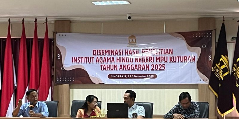 Singaraja, 3 Desember 2025 — Institut Agama Hindu Negeri (IAHN) Mpu Kuturan Singaraja kembali menegaskan komitmennya dalam memperkuat budaya ilmiah melalui penyelenggaraan Diseminasi Hasil Penelitian Tahun Anggaran 2025, yang berlangsung di Aula Rektorat Kampus Menjangan. Kegiatan ini dimulai pukul 09.00 WITA dan diikuti oleh 100 peserta, terdiri atas civitas akademika internal serta peserta eksternal dari BRIDA Buleleng, Dinas Kebudayaan, Dinas Pariwisata, Dinas Pendidikan, dan berbagai pemangku kepentingan lain yang relevan.